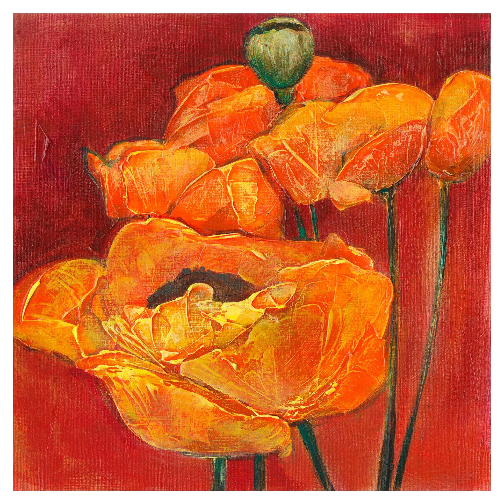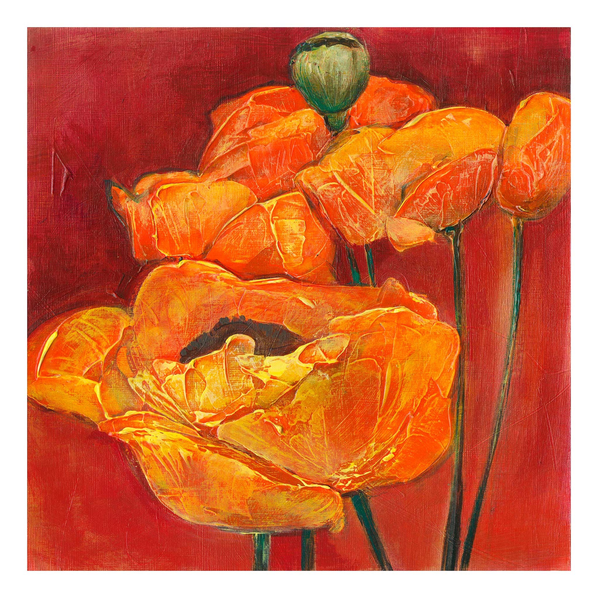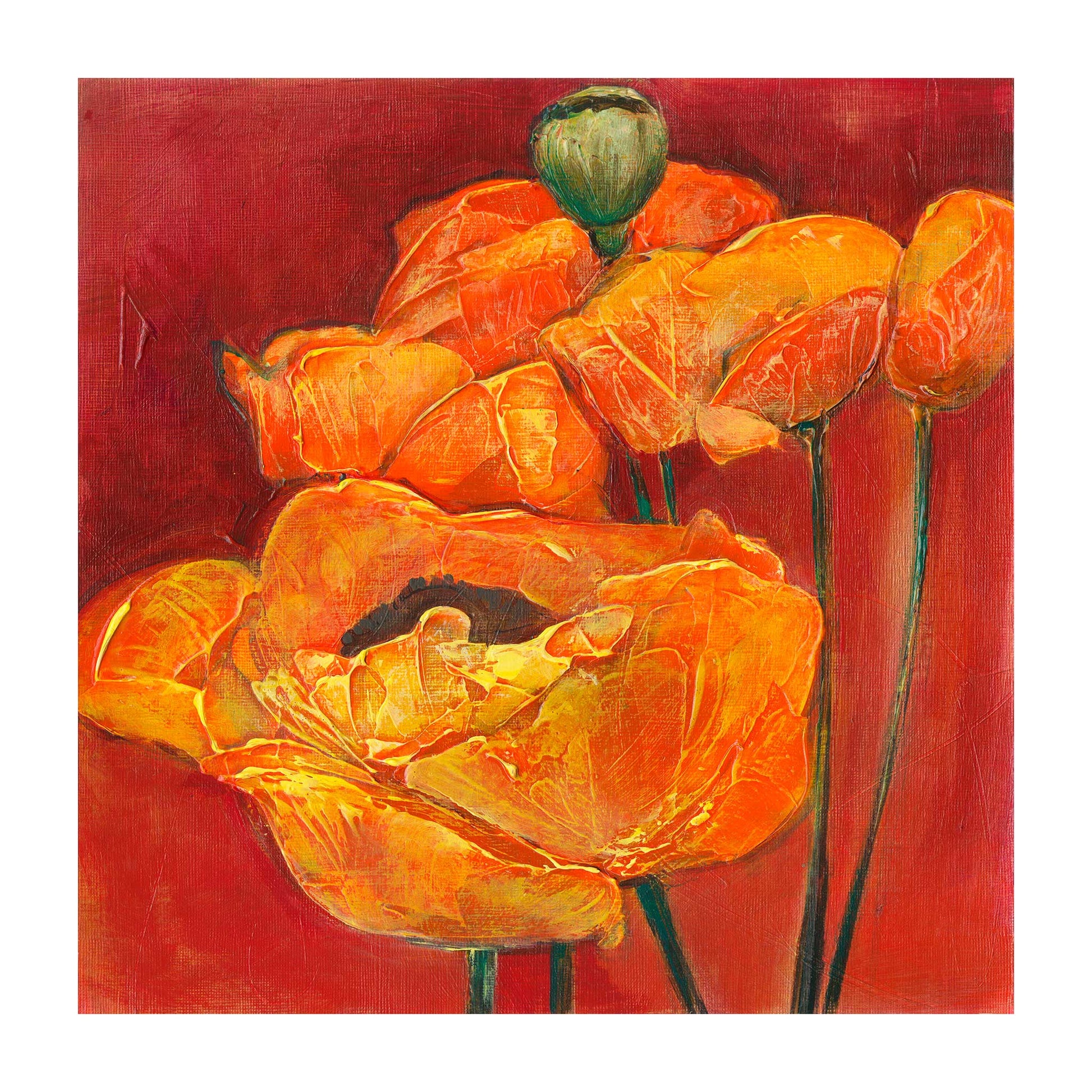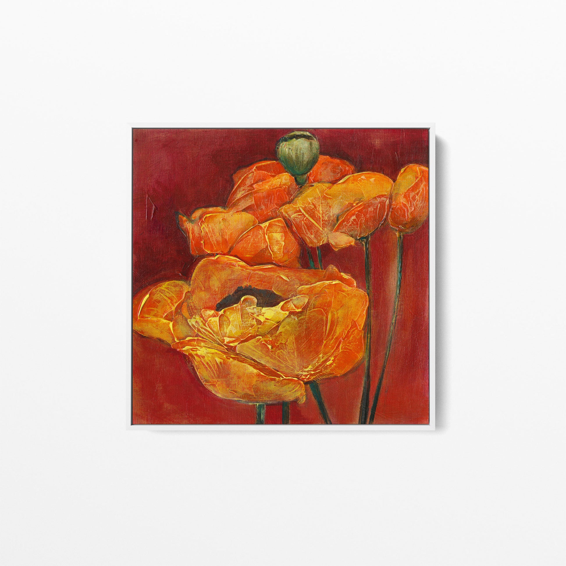 Get ready to ignite your space with fiery orange and red hues! The bold pops of color from dark brown centers and a vibrant green poppy bud will bring warmth and excitement to any room. Choose from a small or large print to make a statement and add a touch of adventure to your decor.