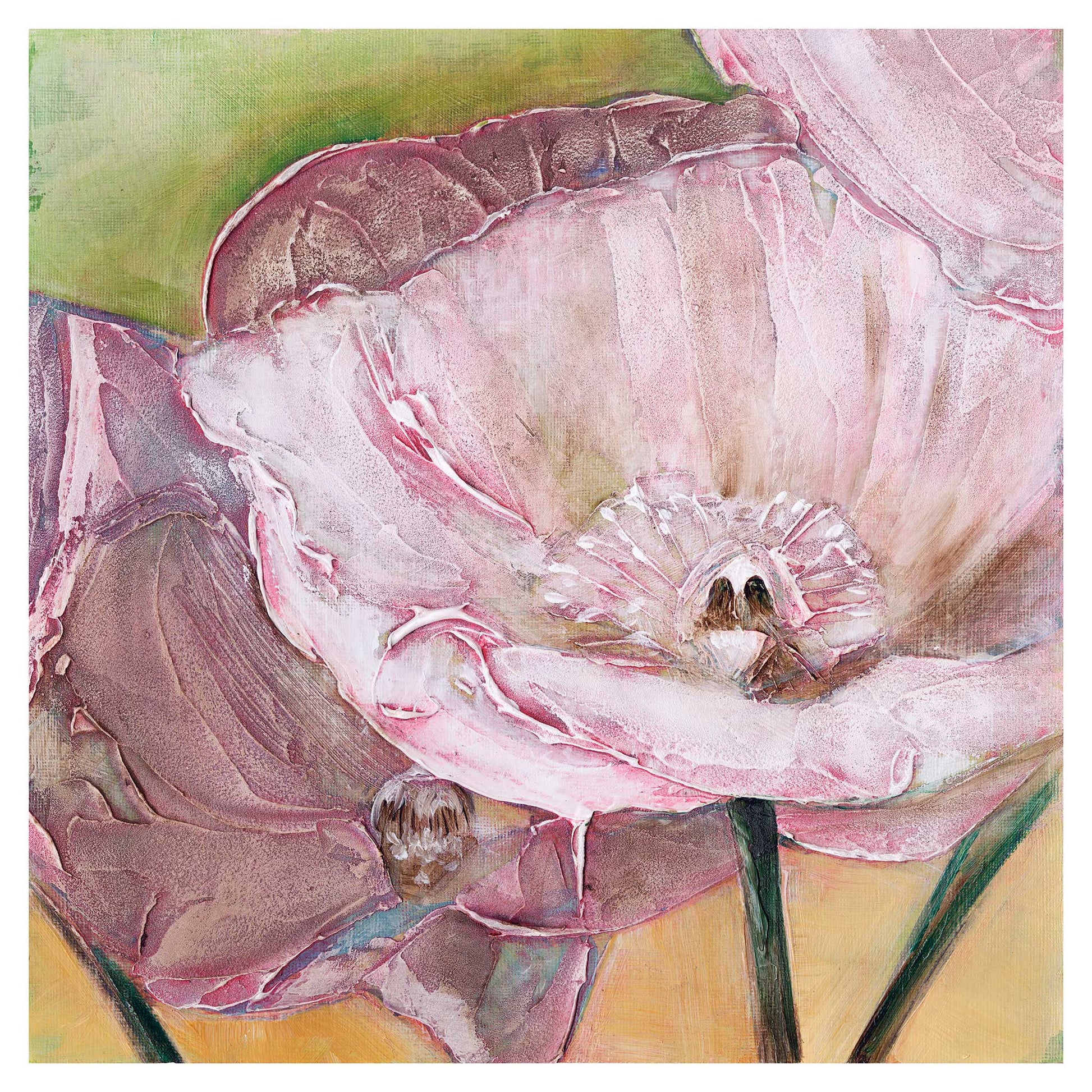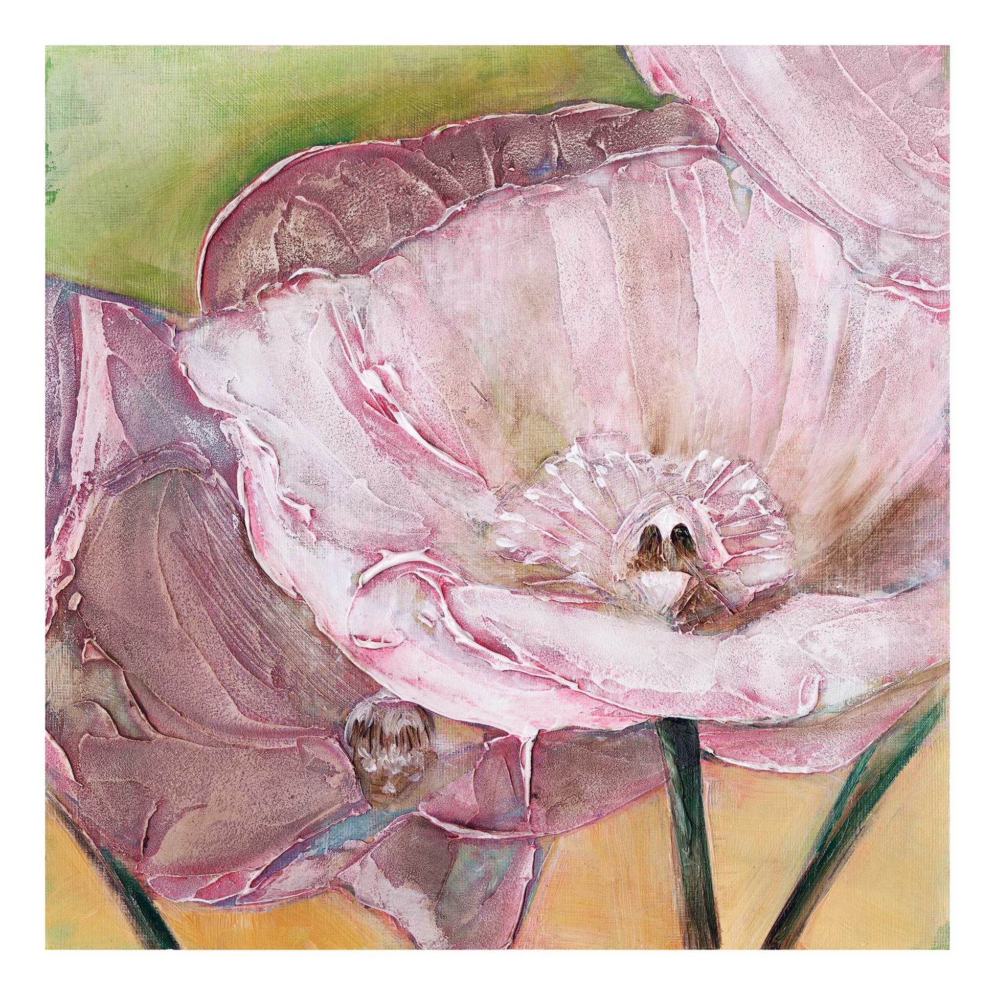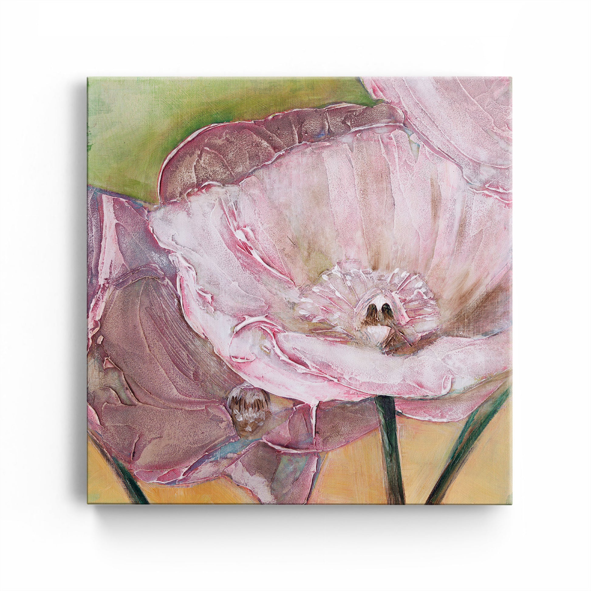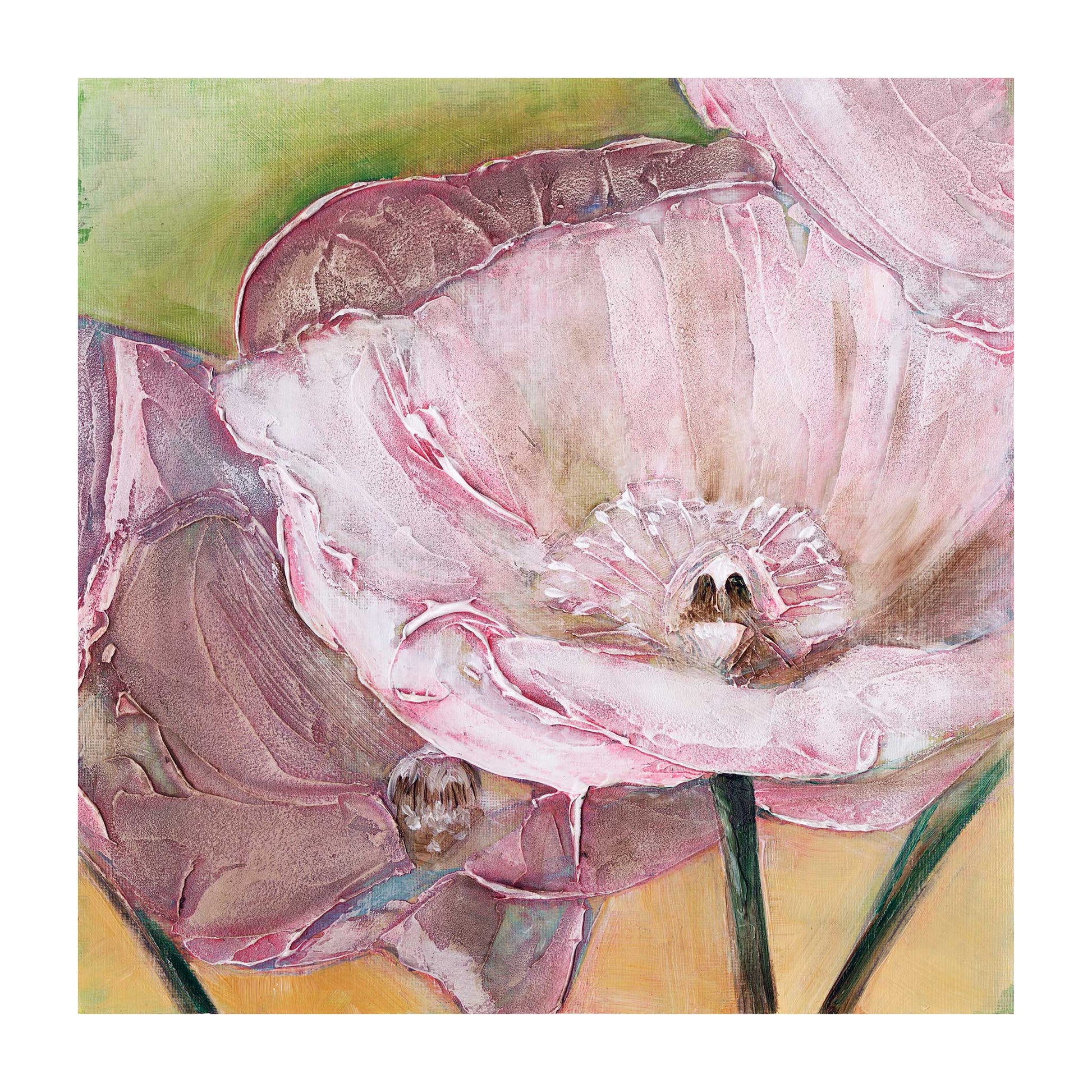 Immerse yourself in the quiet beauty of nature with "Pink Poppies Up Close", a fine art print of an original acrylic painting. This delicate piece offers an intimate view of pink poppy flowers, their textured petals unfolding gracefully against a soft green and yellow background. The composition evokes a sense of peace, stillness, and quiet joy, making it a perfect choice for those who appreciate subtle floral art.