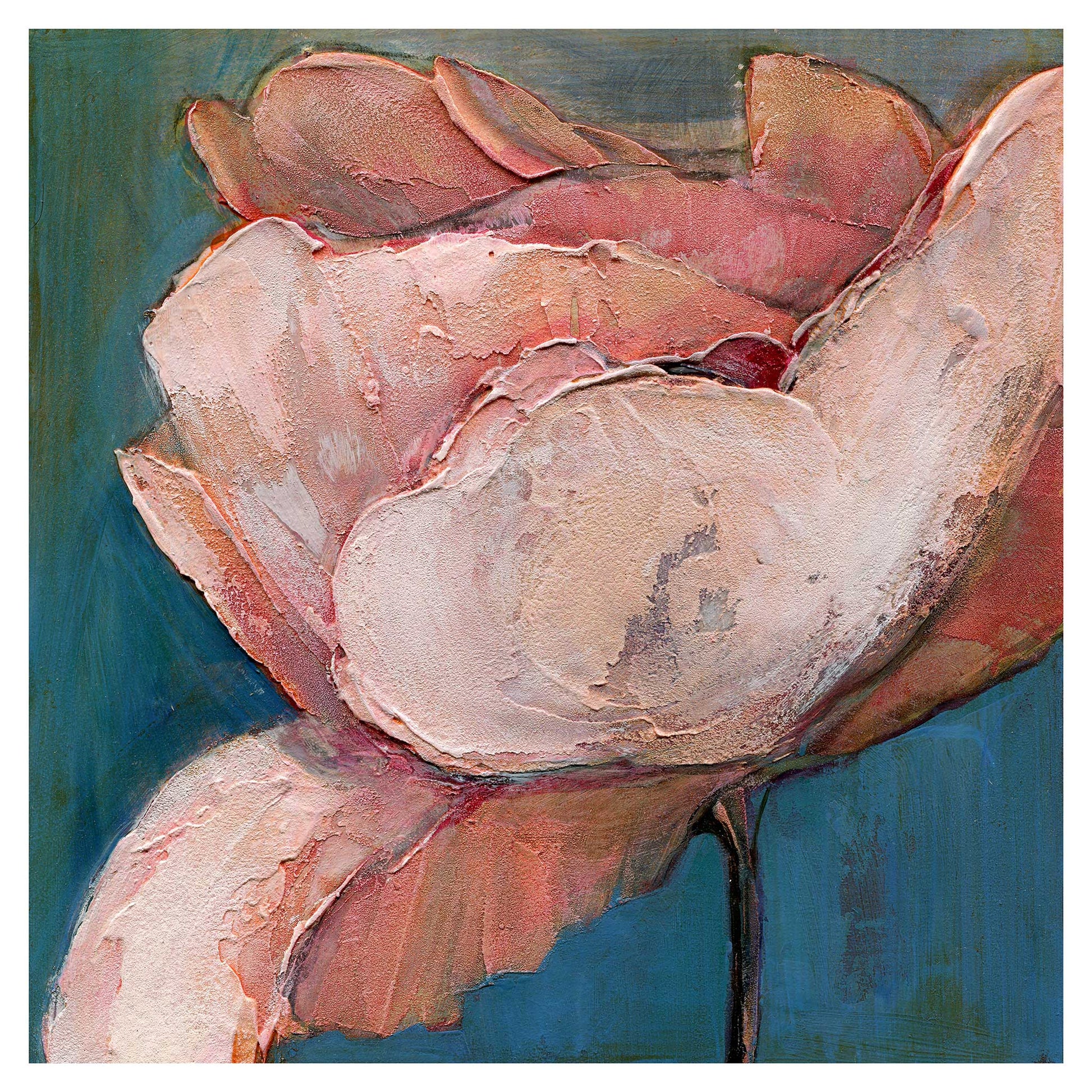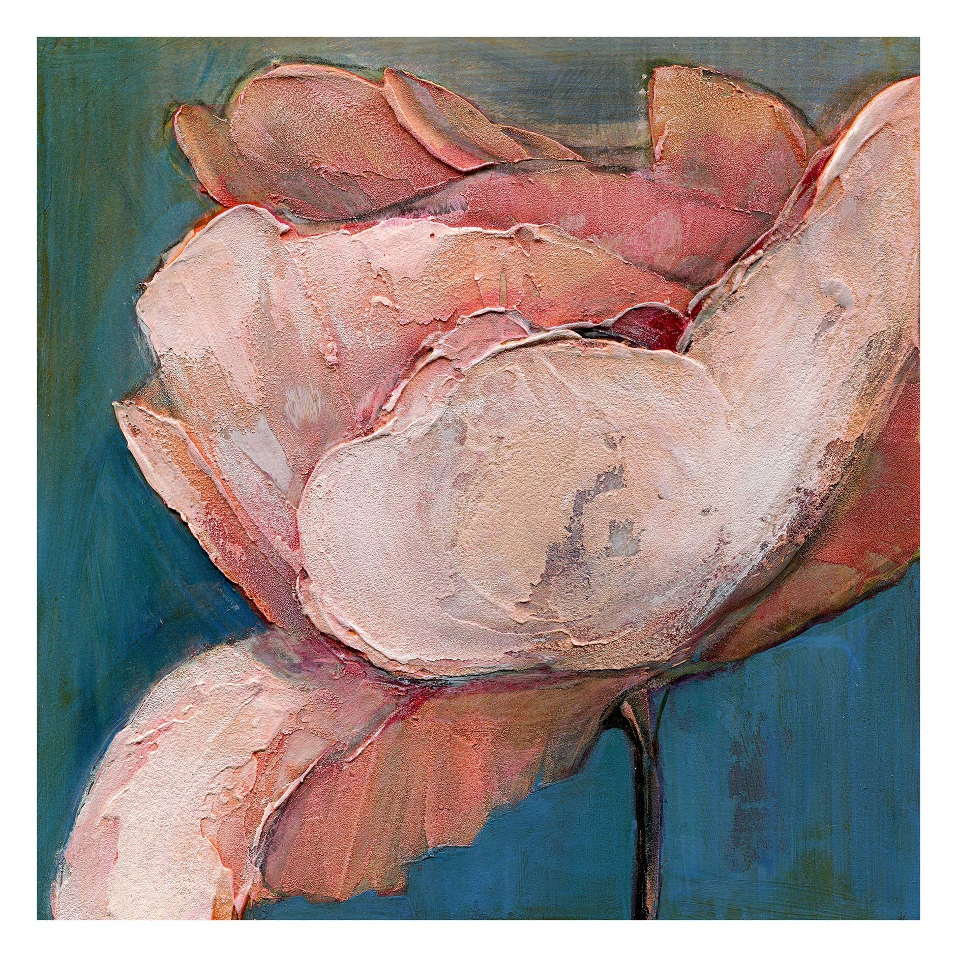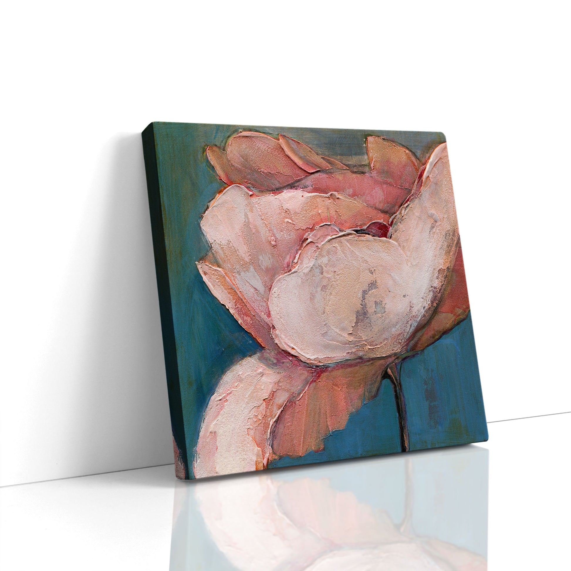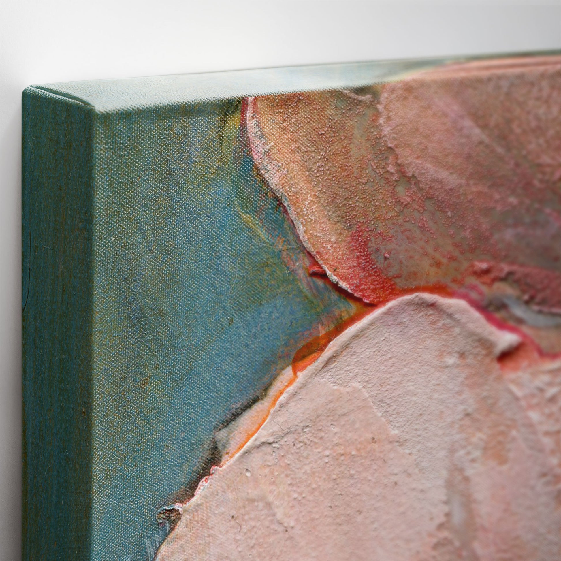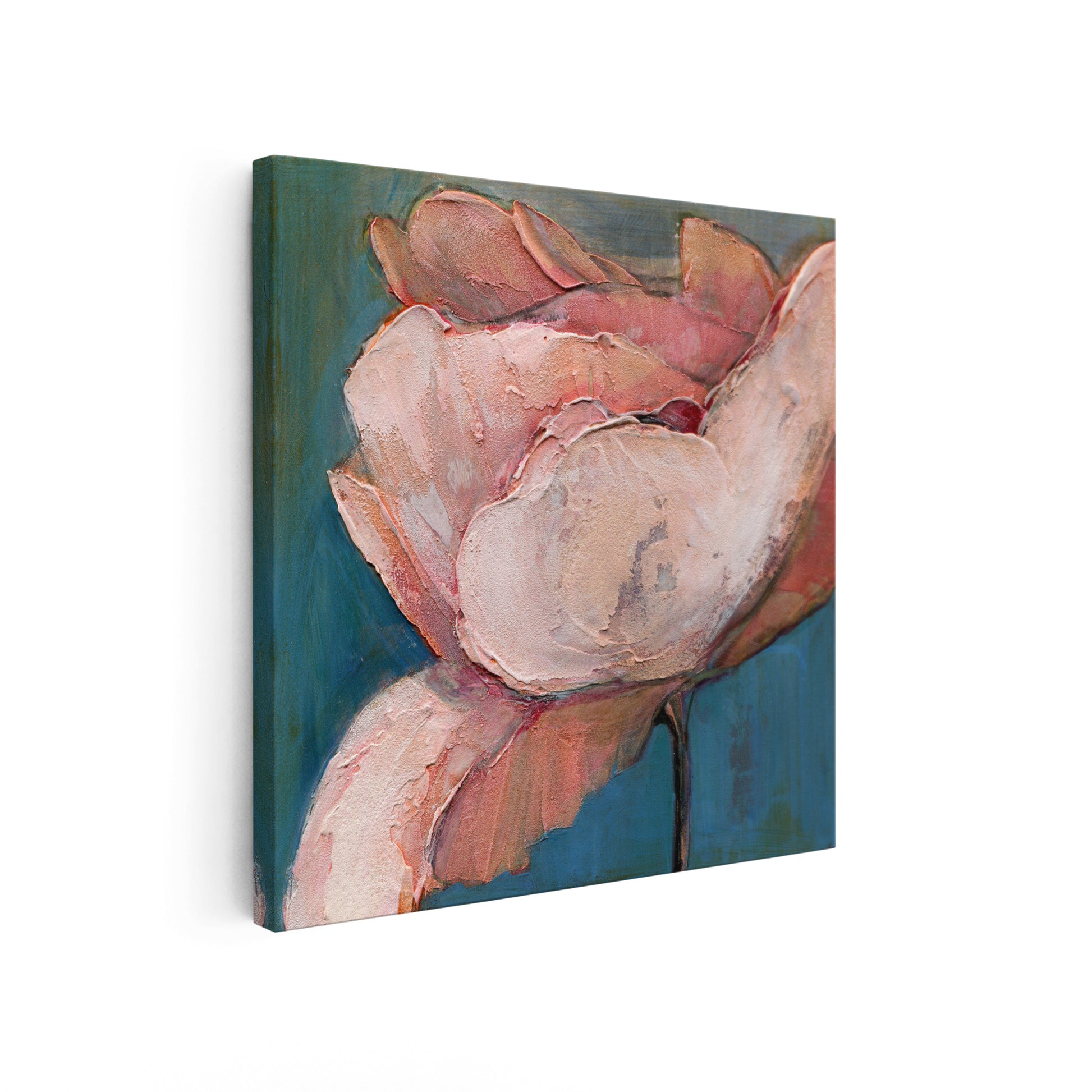 Discover quiet beauty in "Poppy Portrait II", the second print in the six-part series from the original acrylic painting, Six Poppy Portrait. This artwork offers an abstract close-up of poppy petals in soft pink and peach tones, set against a muted teal background. Light, layered brushstrokes create a sense of movement, texture, and gentle elegance, making this piece both calming and expressive.