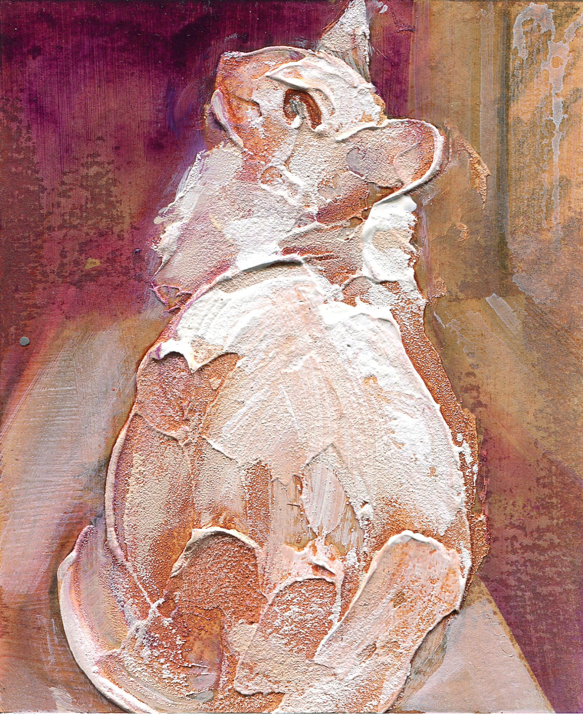 This small heavily textured acrylic painting features my cat Ricca. She was a major fluff ball. This 4x5 inch painting comes matted with a foam core backing ready for an 8x10 inch frame.